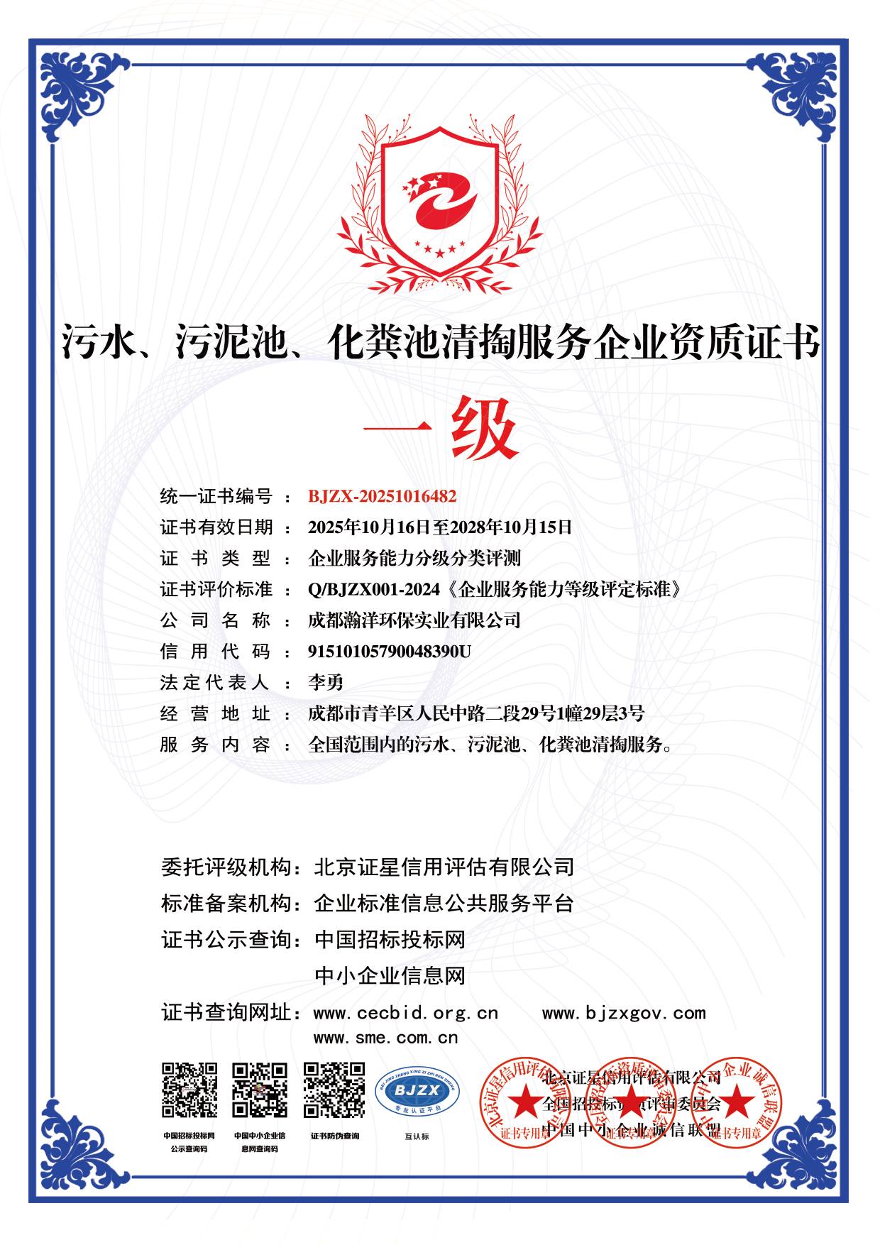 公司全称:成都瀚洋环保实业有限公司