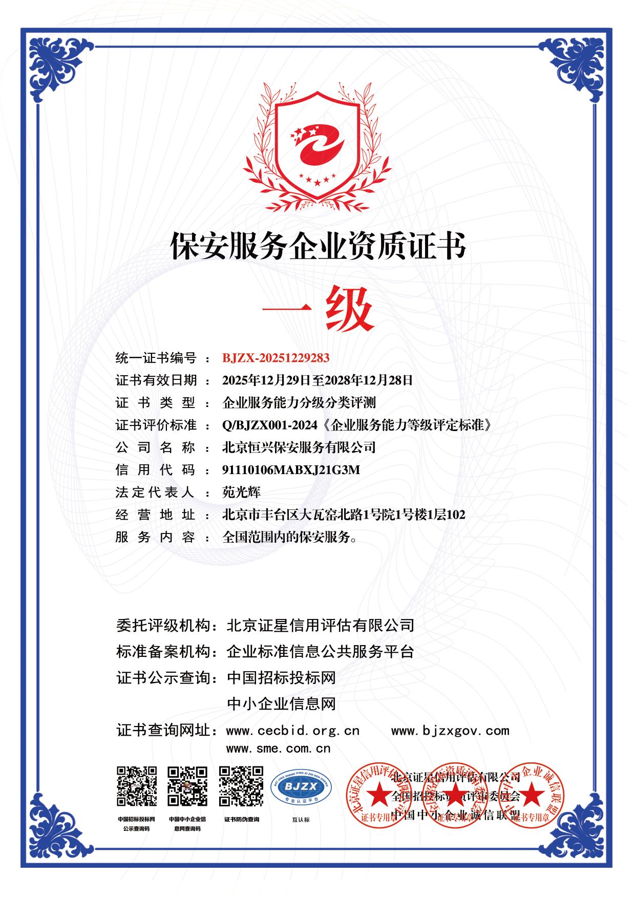 公司全称:北京恒兴保安服务有限公司